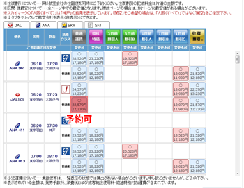 - クリック後 、お選びの便の情報が確認ダイアログに表示されます。誤りが無ければ「この便を選択する」をクリックします。