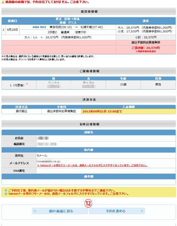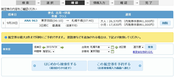 - お選び頂いた航空券の内容が表示されます。内容の確認をお願い致します。
