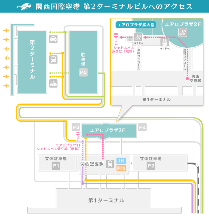 2012年10月28日より、Peachは全便、第2ターミナルへ移動しました。 第2ターミナルへは、無料シャトルバスにて約10分かかります。 空港へは時間に余裕をもってお越しください。
